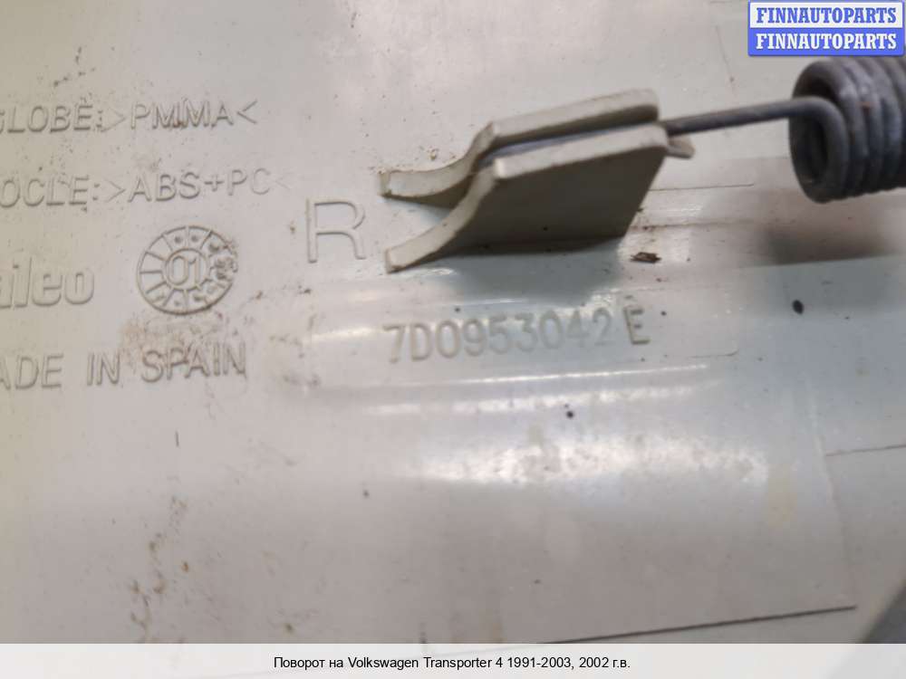 Компания FINNAUTOPARTS занимается продажей контрактных (б/у, бывших в употреблении) запчастей для иномарок. В нашей компании продаются только оригинальные запчасти из Европы, Японии и Кореи, которые не имеют пробега по РФ. Если вы хотите приобрести передний поворотник (правый) для а/м Фольксваген Транспортер Т4, смело обращайтесь в нашу компанию. Все наши менеджеры — профессионалы своего дела, и с удовольствием помогут вам купить запчасти, в том числе, передние поворотники правые, на Volkswagen Transporter T4 и другие автомобили.